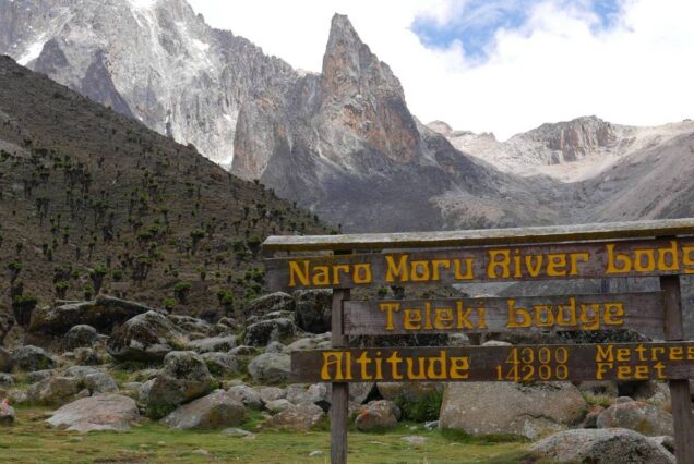 Met Station – Mackinders camp (4,300m).5-6 hrs, 11km, 1,200m ascent. A short walk to the end of the forest line from where you hike across the marshy vertical bog of the lower moorlands. Picnic lunch at the Picnic Rocks before continuing further to Mackinders camp, gaining 1300m in altitude in about 5 hours. Dinner and overnight – Mackinders camp (4300m) Dinner and overnight at the camp.