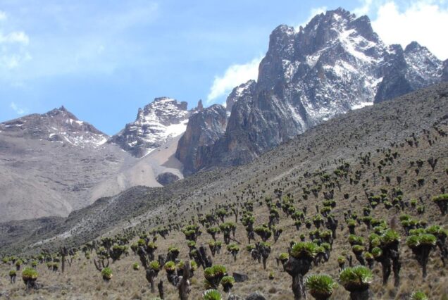 Leave at 0300 hrs for predawn summit attempt, trekking for 3-4 hours across bare rock and scree slopes characteristic of the alpine region up to Pt. Lenana (4985m), the hikers summit, arriving in time to catch the African sunrise. Later descend to Shiptons camp (Sirimon route) for breakfast. After breakfast, begin a 5 hour descent via Mackinder`s valley to the Old Moses camp (3,300m). The descent is gentle and it offers ample time to enjoy fascinating scenery which includes the moorlands before reaching the camp. Dinner and overnight at Old Moses camp.